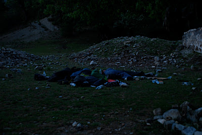 La nuit est marquée par le squat d'une vache bouddhiste dans notre bivouac... Désobéissance civique... On a rien a faire là... Mais Gessner ou Stefan, le doyen du groupe, en protecteur, l'éloigne à coup de flash d'appareil photo...
